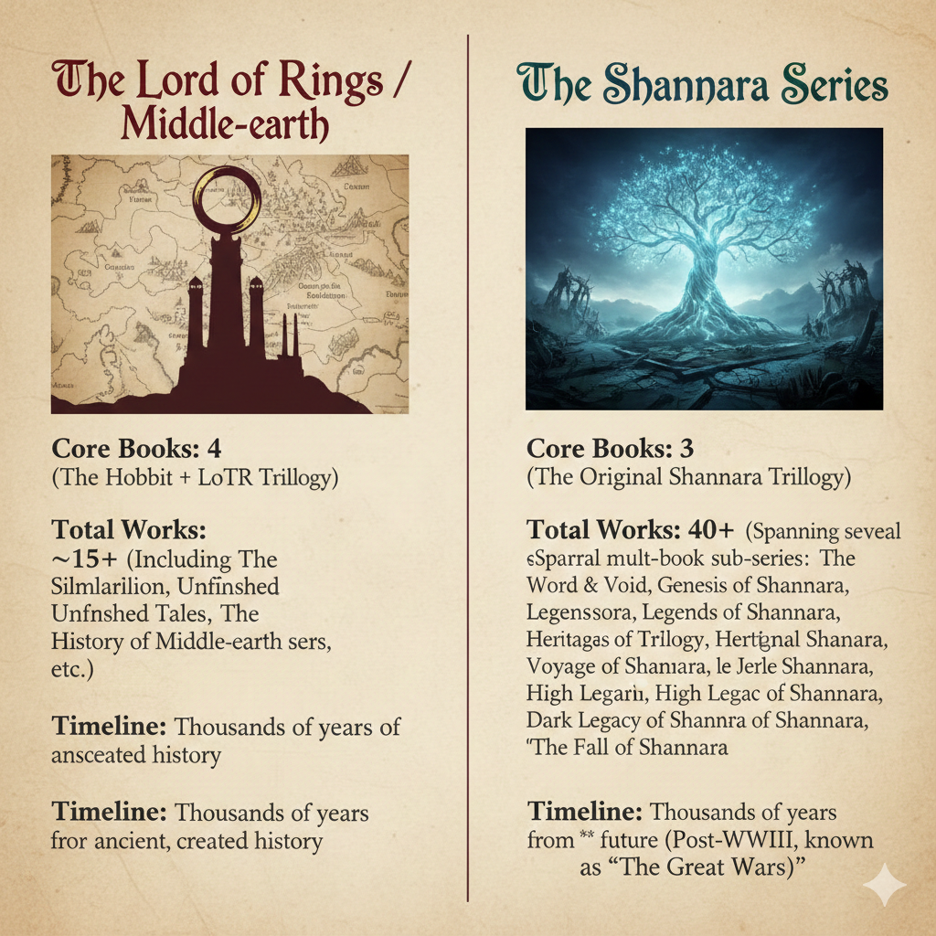 Comparing the timeless classic of Middle-earth to the sprawling, post-apocalyptic epic of the Four Lands.